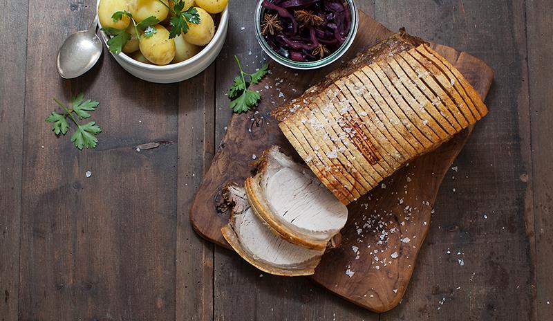 Rødkål, asier, chips, brunede- & hvide kartofler & sauce